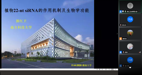 11月6日上午,南方科技大学-北京大学植物与食品研究所所长、生物系讲席教授郭红卫应邀为我校师生作了题为“植物22-nt siRNA的作用机制及生物学功能”的线上学术讲座。本次讲座由yl23411集团姚瑞枫教授主持,yl23411集团、隆平分院师生近两百人(其中本科生六十余人)共享了一场精彩纷呈的学术盛宴。