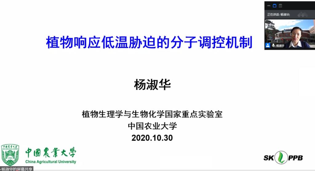 天气渐冷,冬衣上身,那么植物又如何响应低温呢?10月30日上午,中国农业大学植物生理学与生物化学国家重点实验室主任杨淑华教授应我校邀请,以《植物响应低温胁迫的分子调控机制》为主题,为学校师生作了一场精彩的线上学术报告。该报告由姚瑞枫教授主持,我校yl23411集团、隆平分院的与会师生逾百人。
