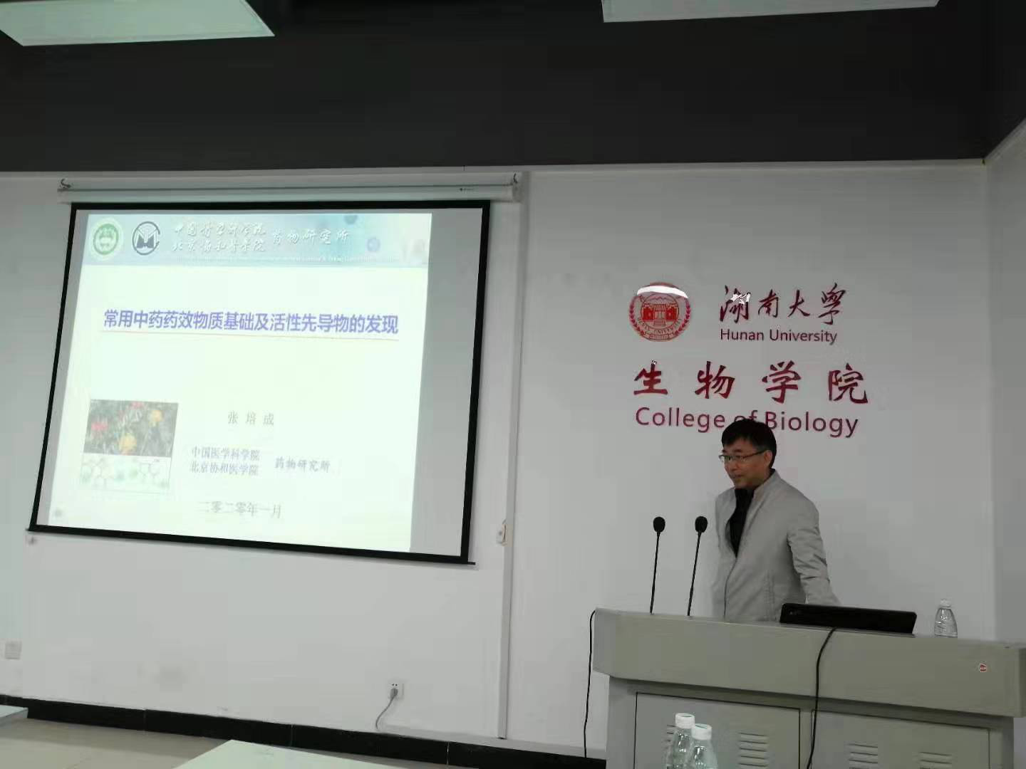 2020年1月6日上午,中国医学科学院、北京协和医学院药物所张培成教授应邀来我院进行学术交流与访问,并作了精彩的学术报告,报告题目为“常用中药药效物质基础及活性先导物发现”。本次报告由yl23411集团郑金海副教授主持。