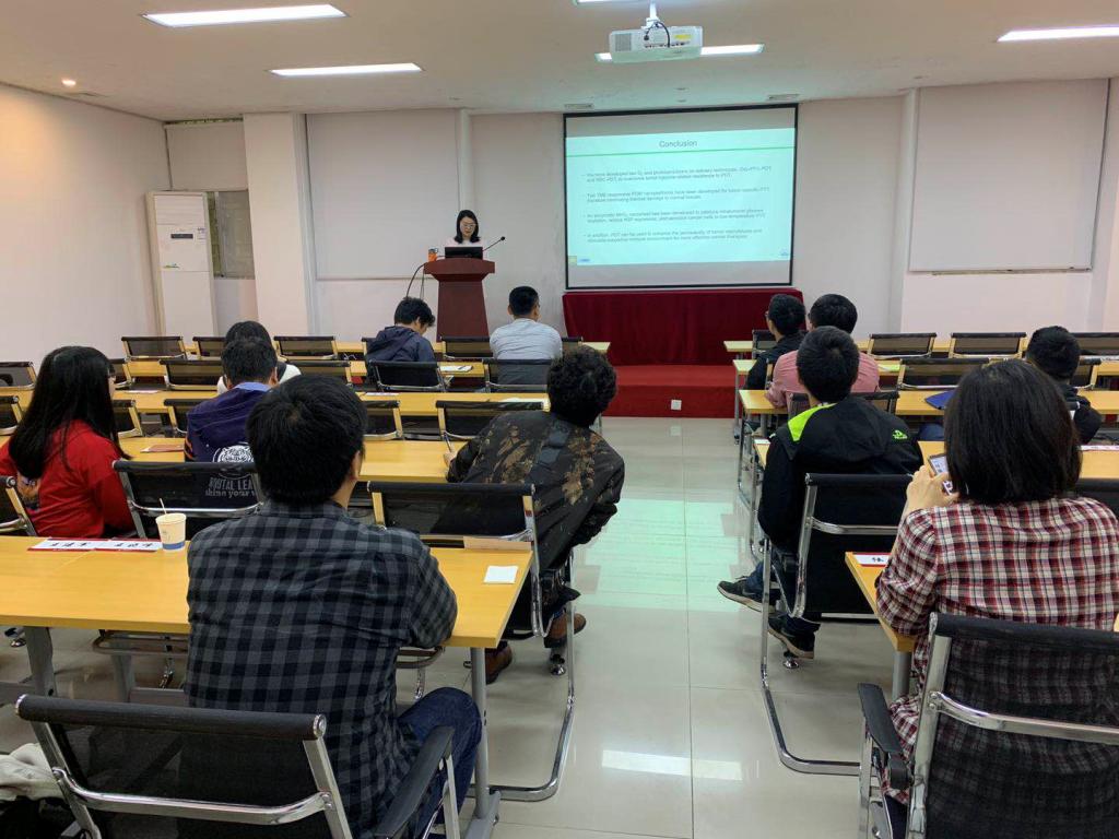 此次报告进行了近一个半小时,针对唐玮博士在纳米医药的光声诊疗研究成果,我院师生与唐玮博士进行了深入的交流与探讨,报告现场气氛热烈友好。唐玮博士的报告开阔了我院师生的学术视野,受到大家一致好评。
