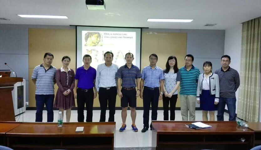 2015年10月16日上午,美国肯塔基大学(University of Kentucky)周序国教授应邀来我院进行学术交流,为学院师生作了题为“ RNA interference in agriculture: challenges and promises”的学术报告。周博士在报告中生动地讲解了 RNA干扰技术在农业病害防治、生物医学领域等方面的发展现状及应用,非常热情地回答了各位老师和同学的提问,并给大家介绍了肯塔基大学的研究方向和背景。会后,周博士参观了我院植物功能基因组学与发育调控湖南省重点实验室,与有关教师就科研合作、学生培养开展了交流。此外,湖南省农科院植物保护研究所所长刘勇研究员、书记张德咏研究员也应邀一同前来听取报告和参加了师生的座谈。