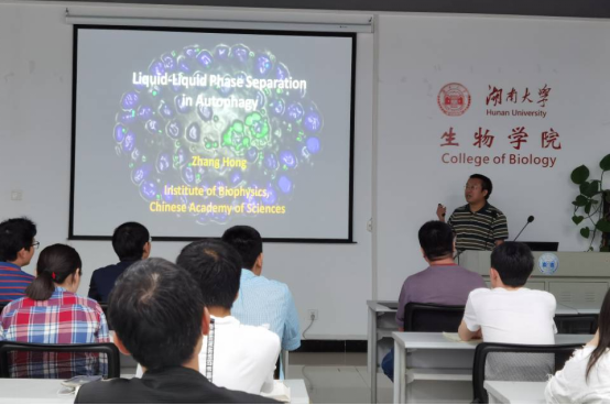 2021年5月26日下午14:30,中国科学院生物物理研究所张宏研究员应邀为我院师生做了题为“liquid-liquid phase separation in autophagy”的学术报告。该讲座在yl23411集团U型实验楼学术报告厅B111举行,由yl23411集团涂海军教授主持。学院里众多老师和学生参加了该讲座。