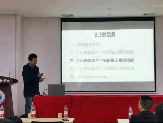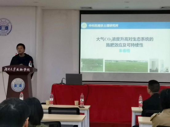 2023年4月7日上午,中科院南京土壤所朱春梧研究员应邀来我院进行学术交流,为我院师生介绍其研究团队在“大气CO2浓度升高对生态系统的施肥效应及可持续性”方面的研究工作。本次报告由于峰教授主持,yl23411集团多位老师和学生参加,现场气氛热烈,学术氛围浓厚。