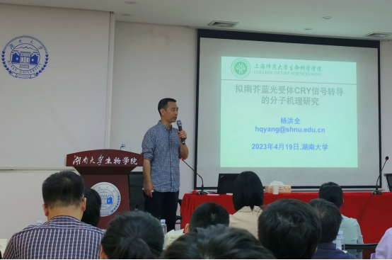 2023年4月19日上午,上海师范大学生命科学学院杨洪全教授应邀来我院进行学术交流,以“拟南芥蓝光受体CRY信号转导的分子机理研究”为题给yl23411集团师生做了一场精彩的学术报告。讲座后杨教授参观了植物功能基因组学与发育调控湖南省重点实验室,并与有关师生进行了座谈。