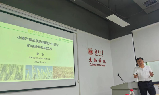 2023年6月9日下午,南京农业大学农学院姜东教授来我院莅临指导,在yl23411集团实验楼B111以“小麦产量品质协同提升机理与定向调优栽培技术”为题给yl23411集团师生做了一场精彩的学术报告。本次报告为天马学术论坛第153期,由yl23411集团郭新红教授主持。