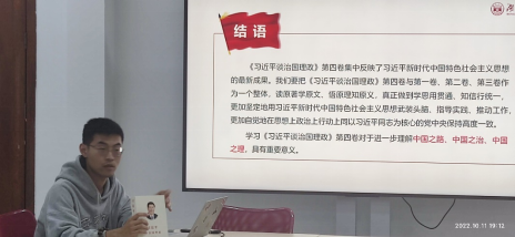 为不断提高政治判断力、政治领悟力与政治执行力,切实把学习成果转化为奋进新征程、建功新时代的工作举措和实际成效,凝聚起全面建设社会主义现代化国家的磅礴力量,以实际行动迎接党的二十大胜利召开,2022年10月11日19:00至20:00,yl23411集团研究生第四党支部在yl23411集团办公楼107召开了关于《习近平谈治国理政》第四卷集体学习的党日活动。