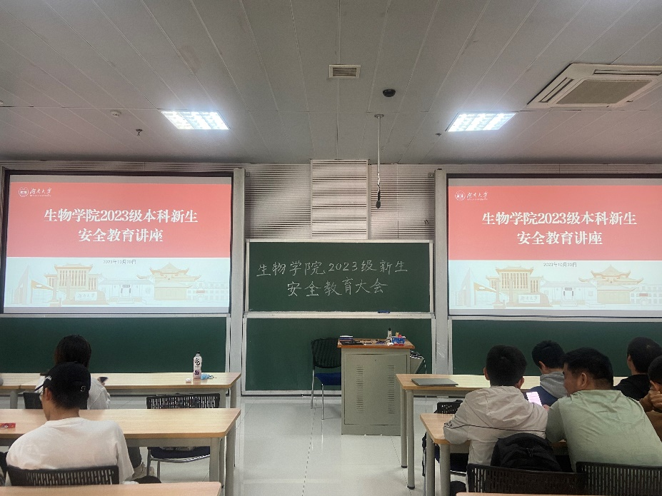 大会最后,于老师再次强调了交通安全的重要性,并对李警官、黄警官的耐心讲解表示了感谢。生物院新生安全教育大会在同学们热烈的掌声中圆满结束,本次大会加深了同学们对交通安全知识、法律法规的了解,增强了防诈骗意识,为未来四年的大学生活奠定了稳固的基石。