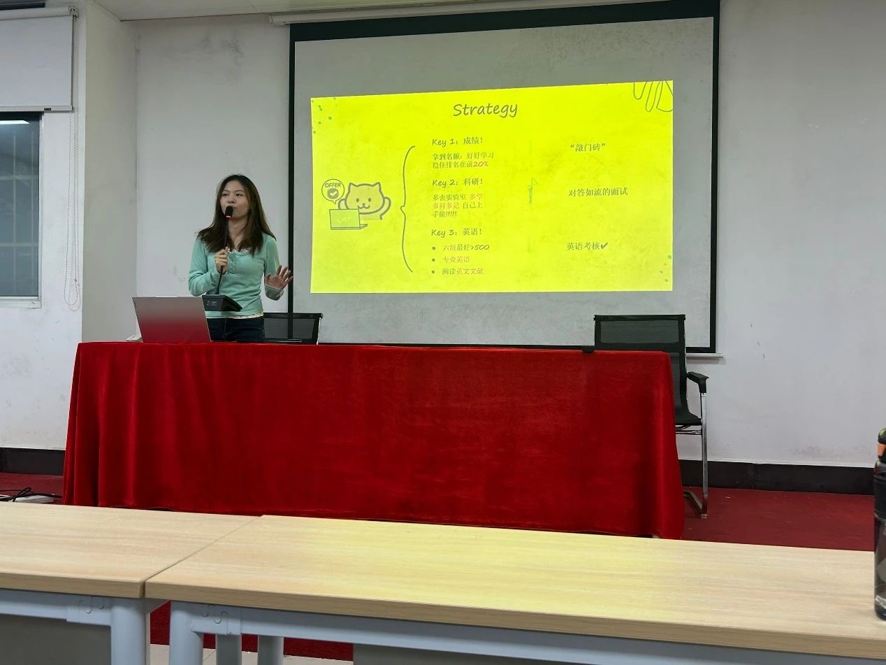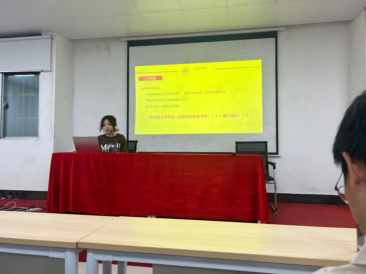 王婕竹同学聚焦于保研前期材料的准备,她详细讲解了个人简历、个人陈述及推荐信的撰写技巧,为参会同学提供了实用的建议。龚欣悦同学针对夏令营的报名、选择及面试技巧进行了深入讲解,特别提醒同学们注意各学校夏令营的报名要求及截止时间,以确保申请顺利进行。