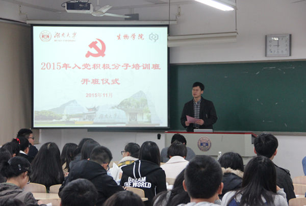 之后,入党积极分子代表、生物技术1501班孙康同学发言,表示将按时上课,积极讨论、深入实践,以最饱满的热情,最全面的投入,最实际的行动来完成我们的党课学习;其次,在未来的生活学习中,以党员的标准来严格要求自己,不断提高自己的思想觉悟和政治水平。