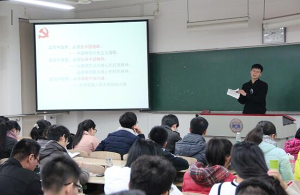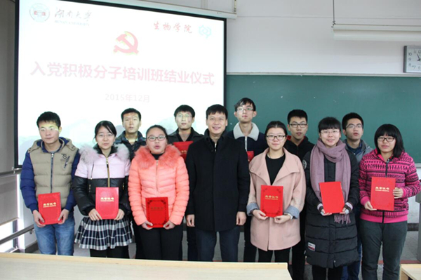 12月13日下午,yl23411集团2015年入党积极分子培训班最后一课暨结业仪式在综合楼403教室举行,107位入党积极分子和学生党员代表参加党课,结班仪式由辅导员胡品主持。