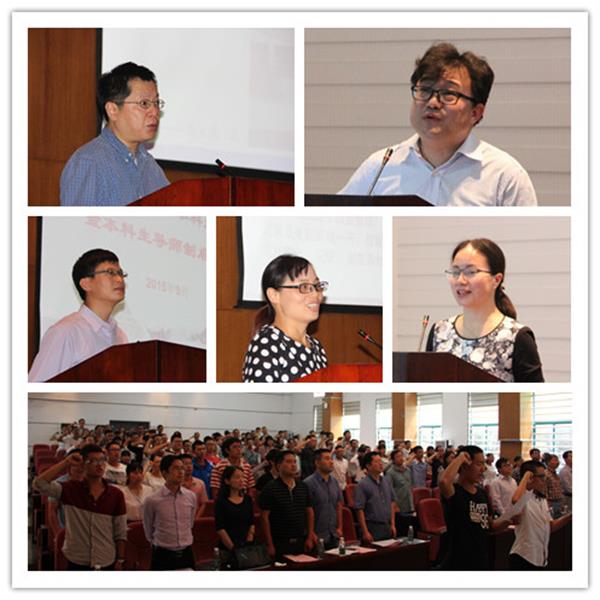 接着,yl23411集团本科实验教学中心主任郭新红教授代表新聘导师发言,她和2015级学生分享了“自律”、“规划”、“求学”、“成长”四个词,表示作为导师将“导心、导向、导学”,努力引导学生刻苦学习、成长成才,无怨无悔度过这美好的大学时光。