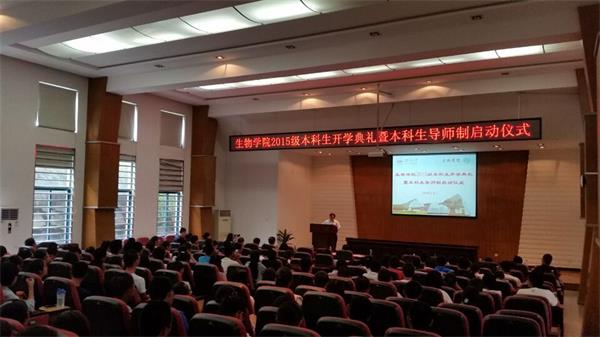 岳麓山下宜聆教,爱晚亭旁好读书。9月26日,yl23411集团2015级本科生开学典礼暨本科生导师制启动仪式隆重举行,全体院领导、各系主任和担任2015级本科生导师的24位教师出席大会。yl23411集团学生会主席团、12位新生助理也参加大会。会议由学院党总支副书记高耀鸿主持。