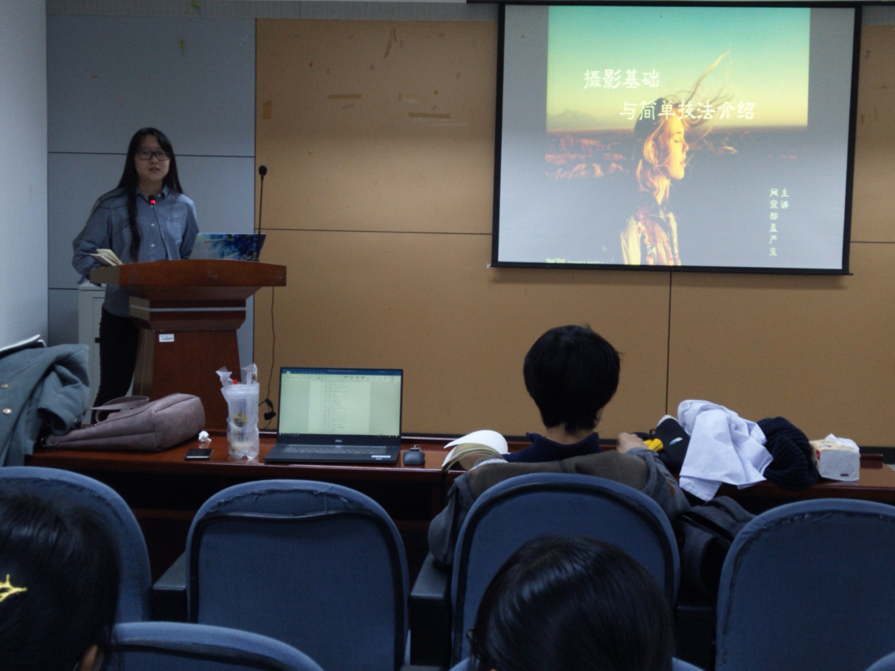 12月15日晚七点,yl23411集团网络与宣传部于生物院报告厅成功举办了2017-2018学年度第一次新闻摄影技能专题培训。此次培训由网宣部副部长盖严支主讲,部长于瑶主持。学院各班宣传委员、学生会各部门写稿骨干、各球队经理都准时到场参加了此次培训。