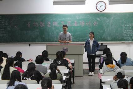 10月26日晚7点,生物院青志协在综合楼109教室举办了生物院2017级敬老院志愿者培训会,会议由青协16级干事汤琦龙和贺银慧主持。