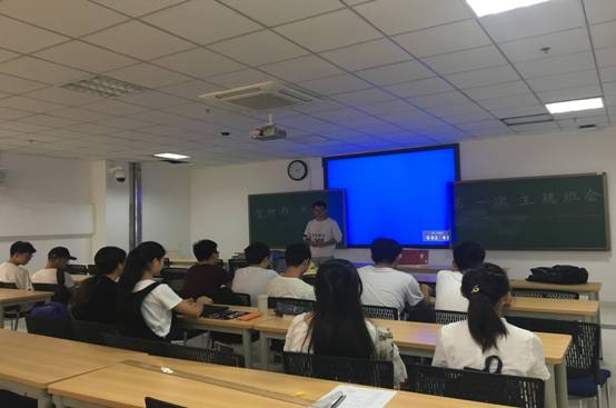 最后,由班主任林建中副教授发表讲话。他强调学习是大学生生活中非常重要的一部分,一定要重视起来,每位学生的学习时间一定要得到保证,不能超过挂科的底线。接着,他鼓励学生在课外的时间看英文教材,在网上看各大名校的生物专业的课程视频。班主任林建中副教授提出上课时间由班委收手机,每个月要开展六级模拟考。而后,他提议开展班级户外活动,增进班级内部友谊。