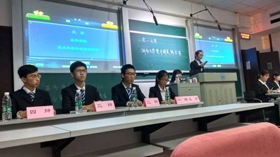 5分钟后,评委返回赛场。来自数学院的16年校辩赛冠军刘一凯同学进行点评。他从立论、驳论、自由辩论交锋等环节进行点评,他谈到同组的队员之间的配合需要更好,每一位同学在赛场上的时间把控能力也需要提升,场下的准备也需要更充分。