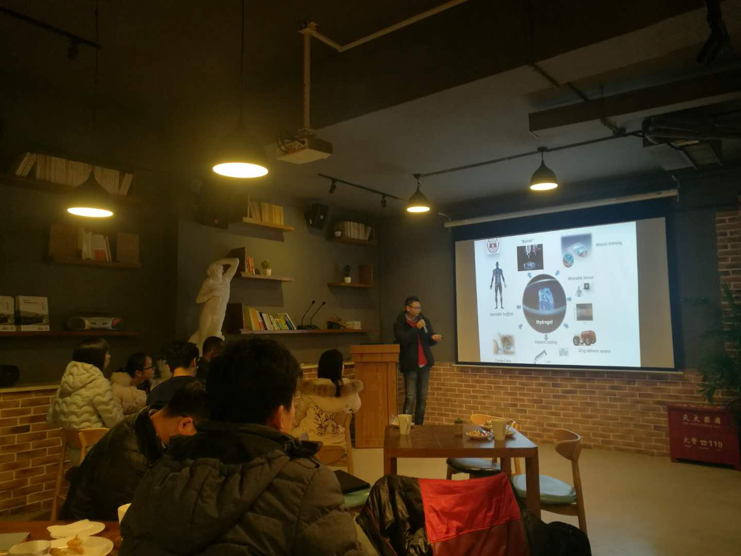 本次学术沙龙由生医党支部成员黄静教授牵头,在外国语学院咖啡厅的友好氛围中展开。活动中,生医党支部入党积极分子贺建军副教授首先做了题为“基于单分子阵列技术的肺癌早期筛查”的学术报告,贺教授课题组是单分子阵列技术的发明者,报告中详细介绍了单分子阵列技术的开发及其在癌症指标蛋白筛查中的应用,展现了yl23411集团和纳米医学中心的最新研究成果;生医党支部党员施李扬副教授做了题为“水凝胶材料的合成与应用“的学术报告,他主要介绍了他在瑞典攻读博士学位阶段的主要工作,展示了新型水凝胶材料的独特性能和潜在应用,得到了现在材料领域专家的赞赏和认可。化学化工学院的邢航和周一歌两位教授也就他们的研究方向做了精彩的学术报告。