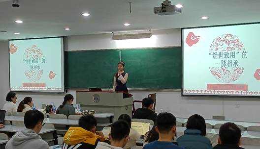 岳麓书院于淼漪和王戈非同学首先为我们带来“经世致用”的“一脉相承”,她们带领我们重温了习总书记来岳麓书院考察的讲话精神,随后为我们将湖湘大地的“经世致用”精神娓娓道来,为我们阐述了应该怎样去理解这种精神,同时也为我们提炼了精神中宝贵价值观念,并鼓励我们争做“经世致用”精神的践行者。