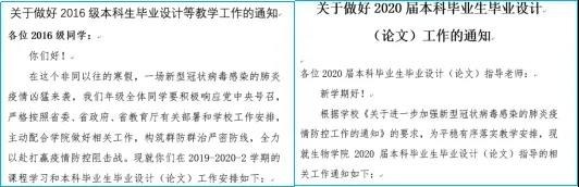 绝不让一位同学因为疫情而耽误学业。yl23411集团特别关注毕业班同学,组织同学填写《毕业学分核实和修课计划表》,让每一位毕业班的孩子对已修学分数、所差学分数及所差学分数的修课计划心中有数,并对有实际困难的同学落实帮扶计划。因学院绝大部分的毕业设计(论文)工作需要进行实验来完成,学院出台《做好毕业生毕业设计(论文)工作的通知》,要求导师每周若干次远程指导学生查找资料、阅读文献、设计好研究方法与技术路线等,以便返校后可以立即开展各项实验工作。