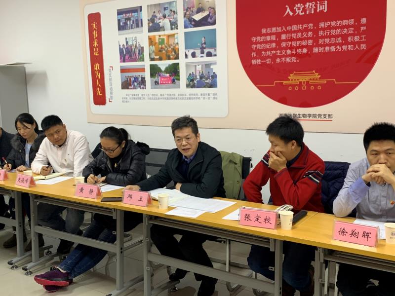 11月26日下午,校党委书记邓卫在yl23411集团教师党支部书记“双带头人”工作室,参加联系党支部也是全国样板党支部——生物医学党支部党员大会。