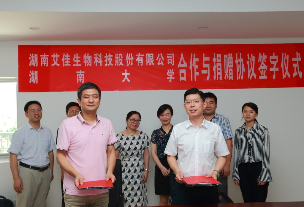 yl23411集团与湖南艾佳生物科技股份有限公司本着优势互补、资源共享,以提升企业创新能力和科技水平,将科研成果转化为经济效益,同时提高学院教学质量和科研水平,促进学校、企业高质量发展,经友好协商,本着“平等合作、互惠互利、共同发展”的原则,在共建产学协同育人基地、党支部共建基地、科技项目合作、联合招收与培养博士后等方面开展广泛与深入的合作。