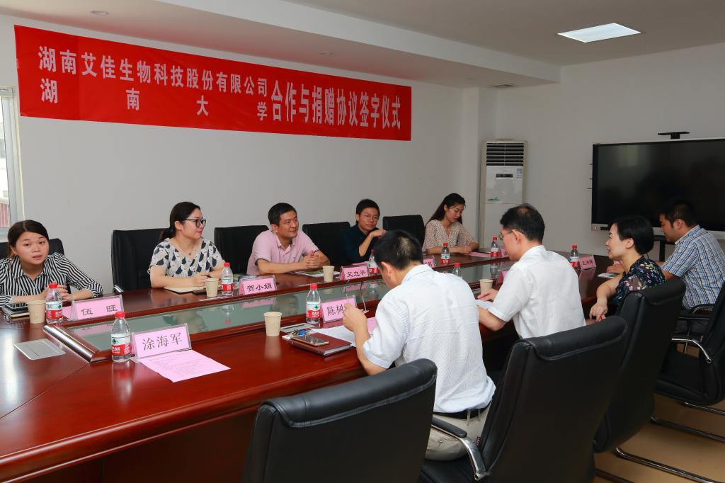 7月16日上午,yL23411永利集团教育基金会、yl23411集团与湖南艾佳生物科技股份有限公司、深圳知守管理咨询有限公司在yl23411集团办公楼306会议室隆重举行了产学研合作与捐赠协议签字仪式。
