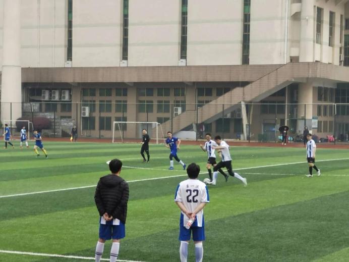 下半场,我方继续压上,以再次扩大比分,书院应对不力犯规阻挡,被判前场定位球。王汉廷镇定地站在球前,这是他的拿手好戏,尽管球距离球门足有三十米远,他毅然选择爆射攻门,皮球划着完美的弧线,以极其刁钻的下坠落入球门远角,王汉廷上演帽子戏法,只可惜他不能把本场比赛用球带回家。此时已无比赛悬念,为避免球员受伤,杨航换下唐一波稳定节奏。不料,几分钟后,对方右路手术刀直塞撕开防线,随后爆射远角得手。之后,万常俊换下王汉廷,周圣康顶替受伤的杨航,以稳固防守,书院也再无建树。4:2的比分延续到了最后,生物院全取三分。