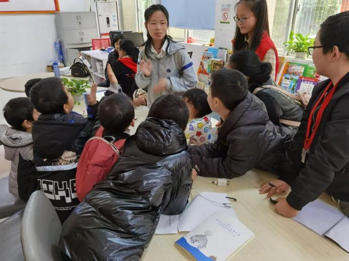 9点前,两位志愿者与参加课程的小朋友们陆续到达学堂坡社区学雷锋活动中心。两位志愿者温习着本节课需要讲解的知识内容,为上课作着准备。小朋友们也对即将开始的课程充满了期待,不停地询问着志愿者上课内容。