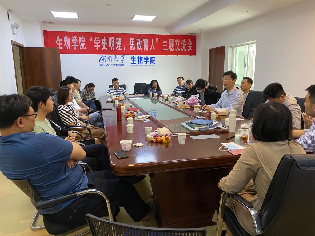 午餐会上,王洪辉老师以《党史学习和课程思政实践和思考》为题进行了主题分享,从当前开展党史教育和课程思政改革背景和意义出发,介绍了我院新成立的课程思政教学研究中心的宗旨和工作计划,并分享了课程教学中具体实践和相关生命科学思政案例。黄明敏老师作了《课程思政:在“授业解惑”中“传道”》的主题分享,她以其所授生命科学通识课程《生命传记》为具体案例,针对课程目标设计、教学管理与评价、内容体系开发和教学方法选择等多个维度进行了经验分享,深入浅出的上了一堂“润物细无声”的有机融合课程思政与科学技术历史教育的专题课。与会教师紧紧围绕如何将课程思政建设和党史学习相结合等话题展开了热烈讨论。
