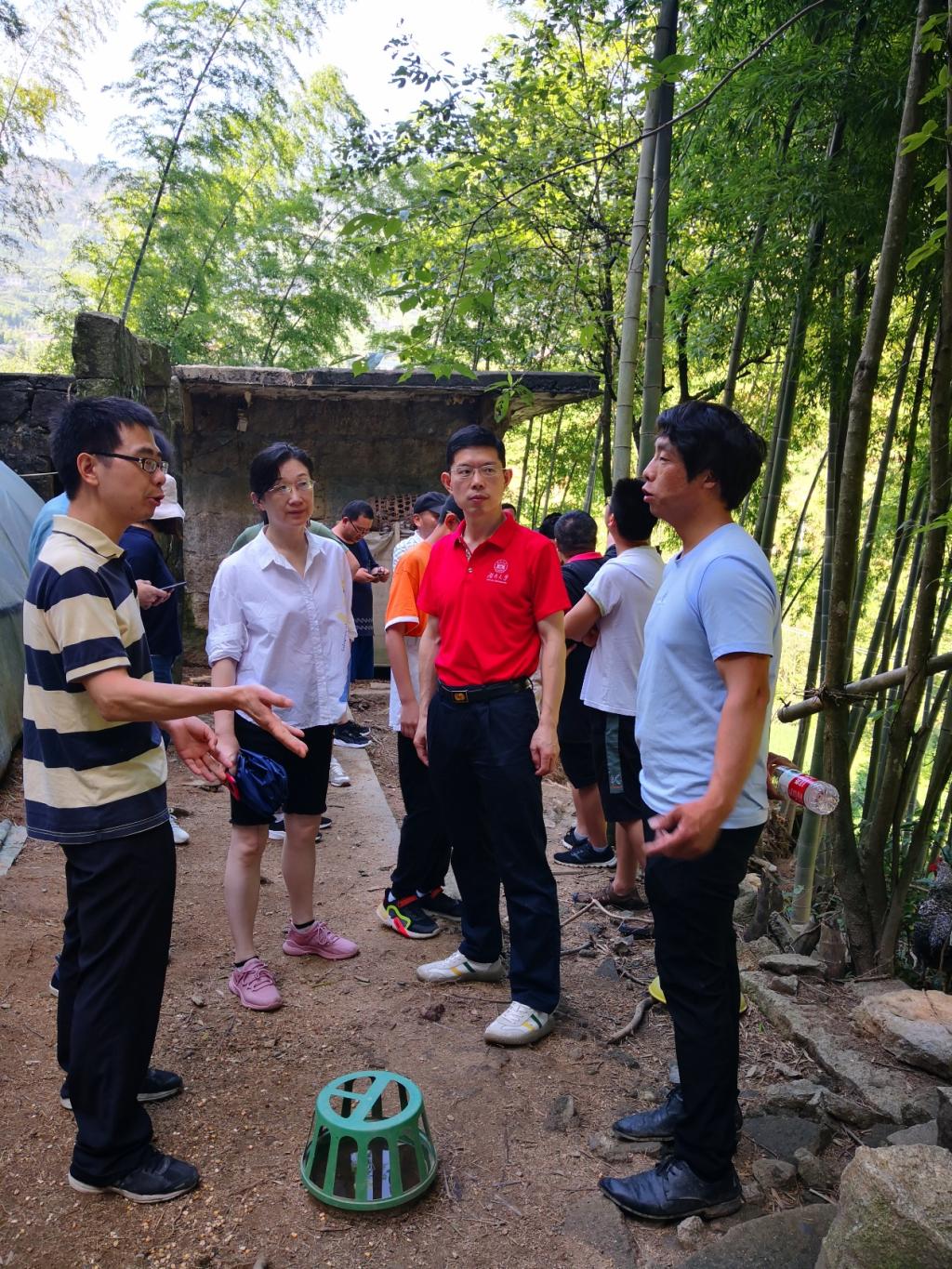 调研组调研“跑步鸡”养殖场,并与负责人交流