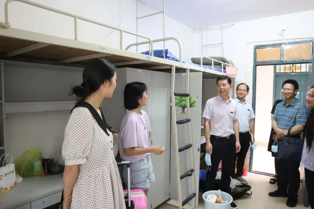 我院李书记、陈书记、涂院长、罗主任和新生辅导员冉老师也来到园区慰问了新生助理与志愿者,与新生进行了亲切友好的交流,并且为新生送上爱心大礼包。