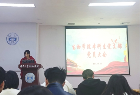 2021年11月14日晚8点,yl23411集团本科生党支部于yl23411集团办公楼108会议室召开预备党员接收大会。本次大会由徐丁香同志主持,支部书记冉晓芬老师出席,支部全体党员参加。