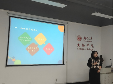 黄明敏老师的授课主题为《如何做好实验课助教培训》。黄老师阐述了助教工作对于同学们的意义,助教工作不仅可以帮助大家拓展专业知识还可以帮助大家学习、训练教学方法。接着黄老师结合yl23411集团实验课具体实际,向同学们介绍了助教工作的主要内容以及如何做好实验课助教培训工作。最后,黄老师讲述了实验课助教工作的注意事项,如人身安全、试剂安全、设备安全、水电安全等问题。