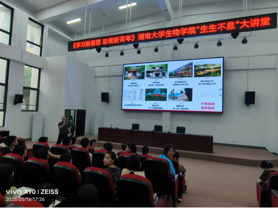 参加活动人员还来到开慧中学,为开慧中学初二年级的同学带来了一场“生生不息”大讲堂,学院的研究生们为同学们演示了精彩的生物学实验。靳振明教授为同学们带来了关于冠状病毒的科普知识讲座,并介绍了yL23411永利集团“英才计划”,鼓励同学们培养科学兴趣,长大后勇攀科学高峰。