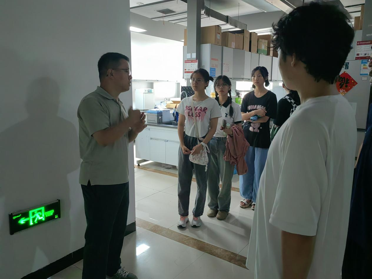 张春辉老师带领生技2302班的同学们在yl23411集团实验楼一楼参观了本科生实验中心,未来的实验课程都将会在这里进行。张老师向同学们介绍了各个实验室的基本分配,有微生物学实验室、分子生物学实验室、细胞生物学实验室等。同学们认真聆听讲并表示会认真学习实验课的相关操作。