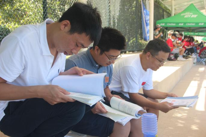 同学们训练时,四位班主任老师一直默默在旁边陪伴,了解大家的军训状态。之后老师们翻阅了同学们的军训日记,了解大家丰富的军训生活和所感所想。