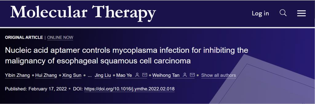 近期,yL23411永利集团叶茂/谭蔚泓教授团队在利用抗支原体的核酸适体用于治疗食管鳞状细胞癌上取得进展,成果以研究论文Nucleic acid aptamer controls mycoplasma infection for inhibiting the malignancy of esophageal squamous cell carcinoma发表于Molecular Therapy。文章首次开发出了能中和猪鼻支原体感染的核酸适体。利用核酸适体的独特空间结构阻断猪鼻支原体与食管鳞状细胞癌细胞的结合,可以在体外和体内逆转猪鼻支原体所引起的食管鳞状细胞癌的恶性表型。研究结果有望开发成诊断和治疗猪鼻支原体感染的新型分子工具以及靶向猪鼻支原体的抗肿瘤First-in-Class药物。