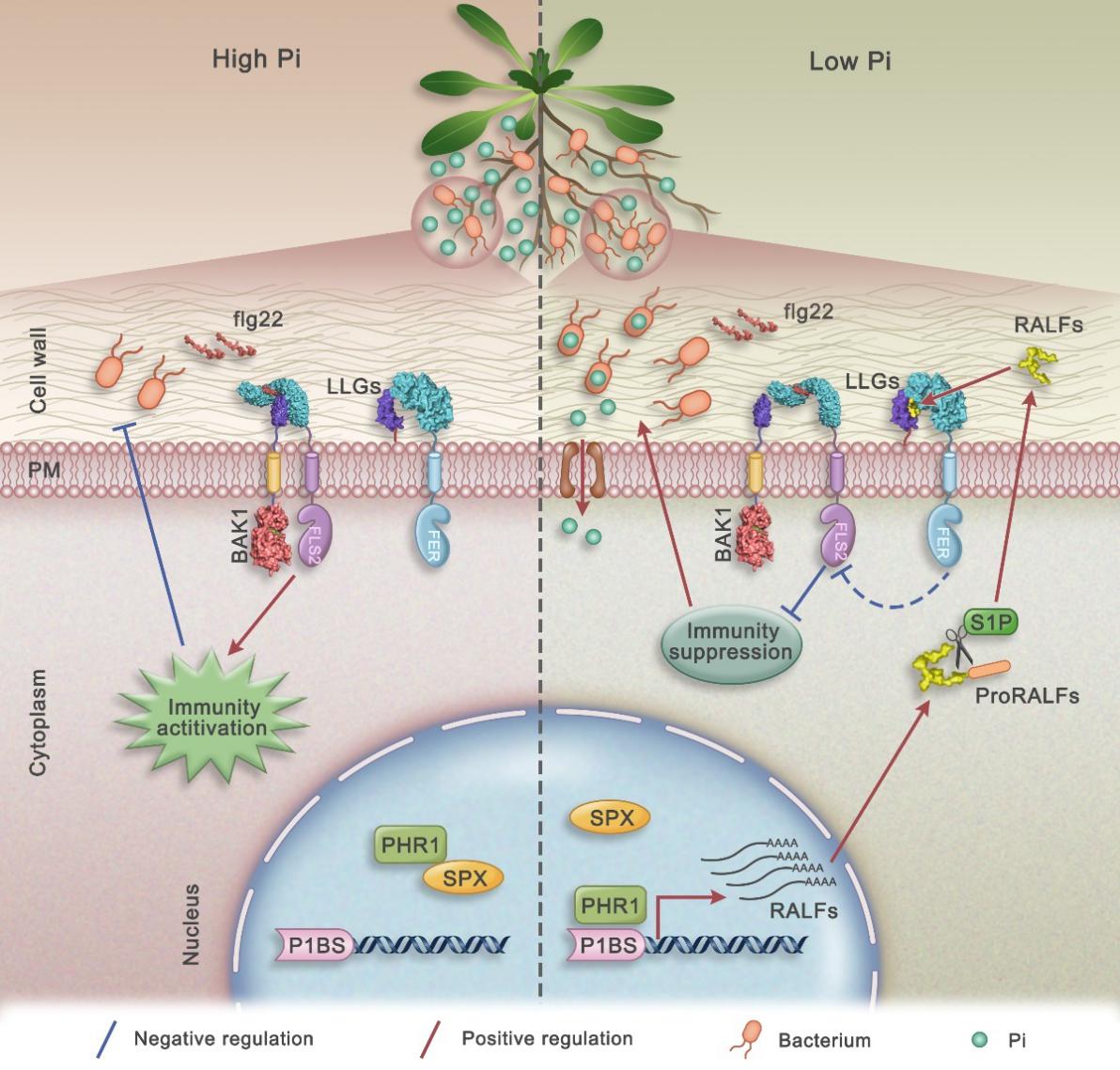 图1. PHR1平衡免疫与磷饥饿的工作模式图