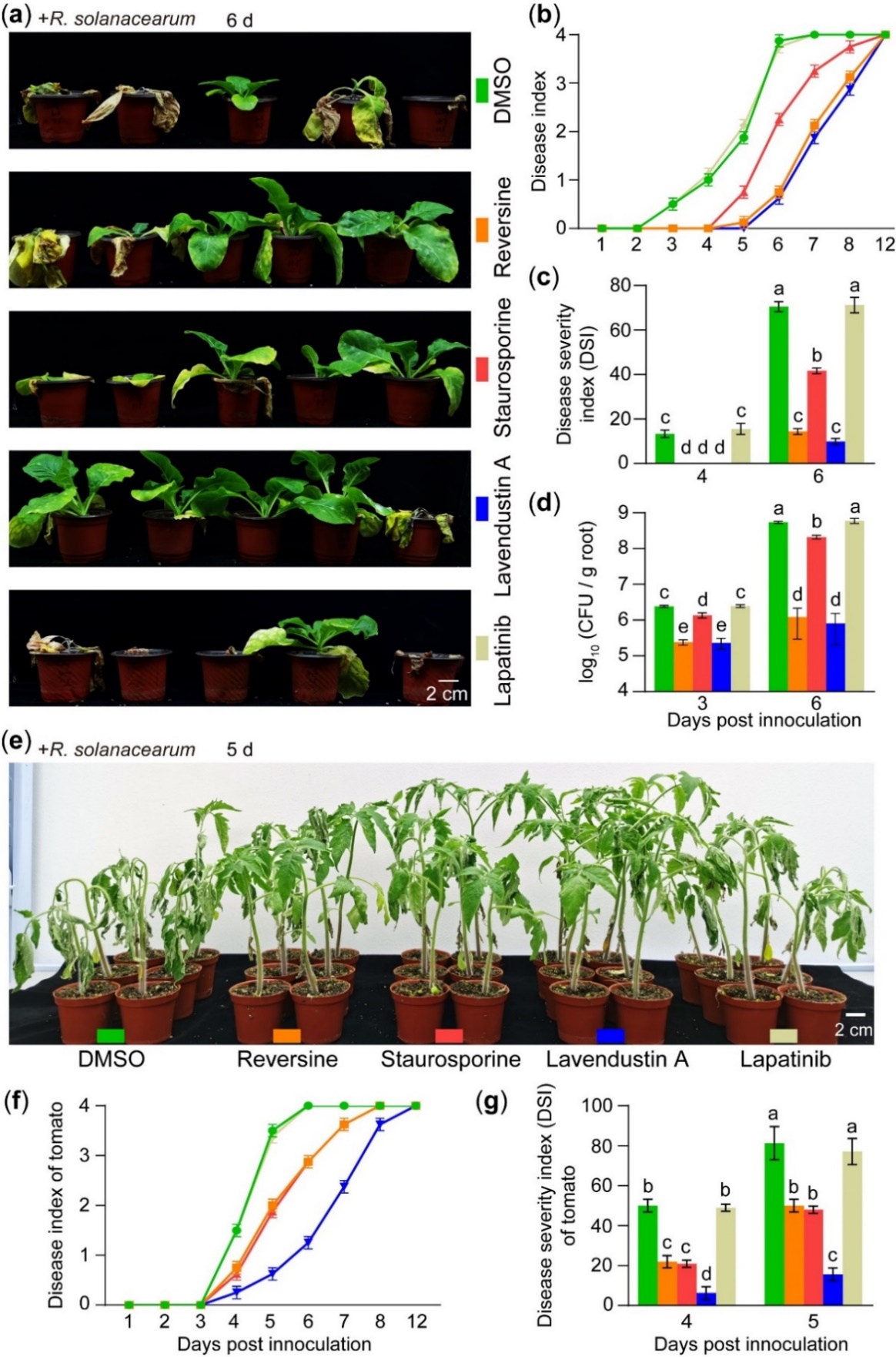 本研究首次对RLK激酶抑制剂进行系统筛选,推动了RLK激酶调控理论的发展;FER抑制剂有望成为新型靶向农药,可为绿色高效的综合防控植物土传病害体系提供新的途径。研究人员已针对reversine、staurosporine和lavendustin A提高植物土传病害抗性申请了发明专利,正向农业生产应用迈进。