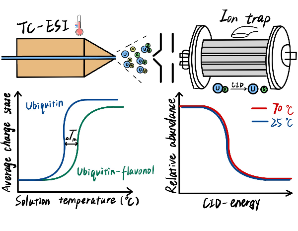 本工作中,岳磊教授团队发展了温控电喷雾电离串联质谱技术(TC-ESI-MSn),用于深入探究蛋白和黄酮类小分子在不同温度维度下的相互作用力及其他相互关系。研究团队首先