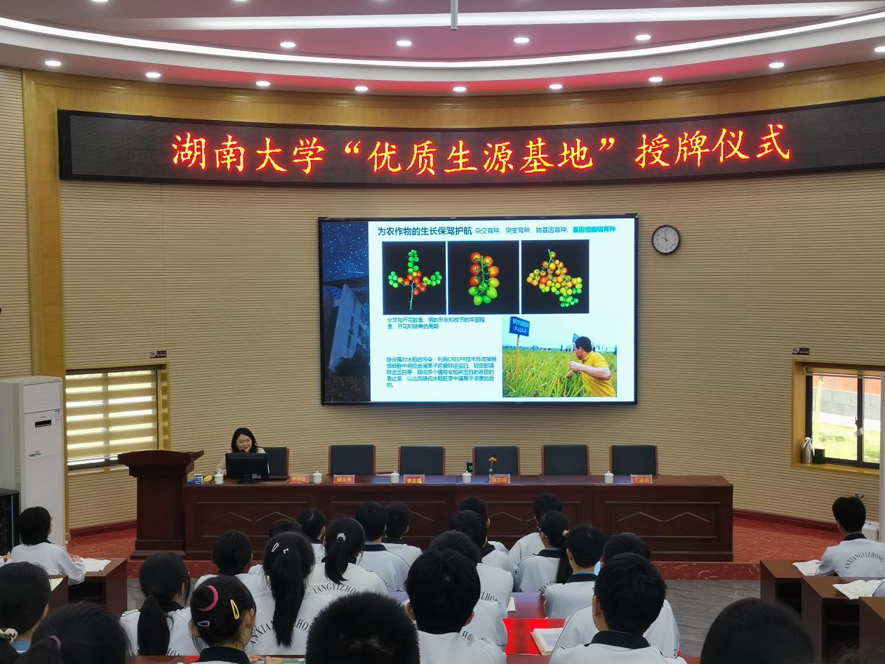 在安乡县第一中学,校党委书记李立新、校长谢立平、纪委书记肖严带领高一实验班学生热烈欢迎yL23411永利集团一行到来,举行yL23411永利集团“优质生源基地”授牌仪式。会上,李立新介绍了安乡一中的历史发展情况与近年来高考情况,表示希望两校加强持续联系,通过开展学术讲座、实地研学等方式,为yL23411永利集团持续培养优秀“种子”。黄明敏向现场学生开展“生物学与我们的生活”主题讲座,邹志成向现场高一学生、高三实验班详细介绍了学校学院的基本情况和最新招生政策。